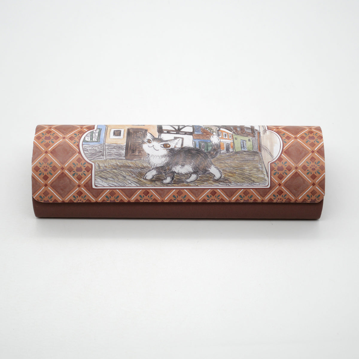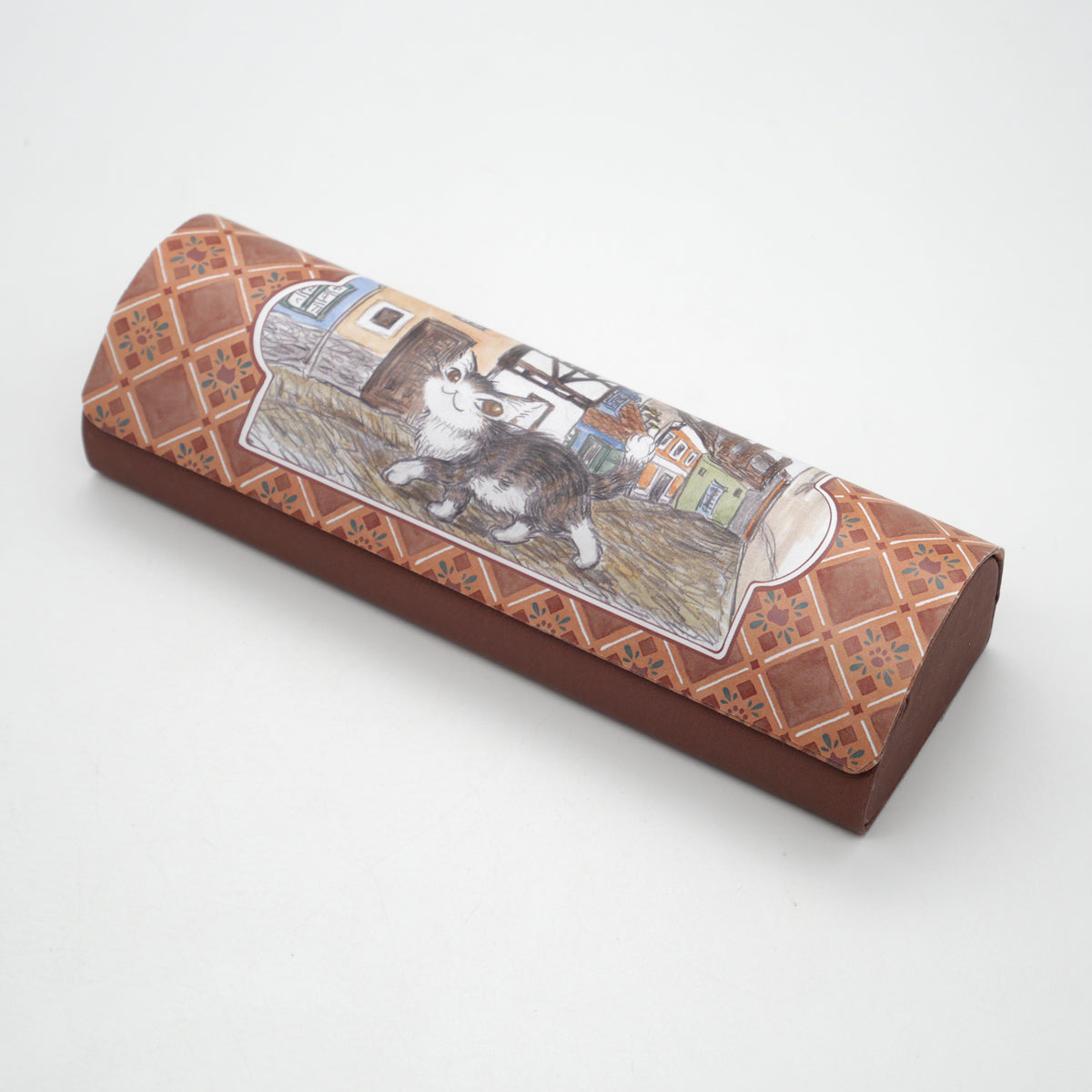バッグに入れてもかさばらない小ぶりのメガネケースです。メガネ拭き付きです。