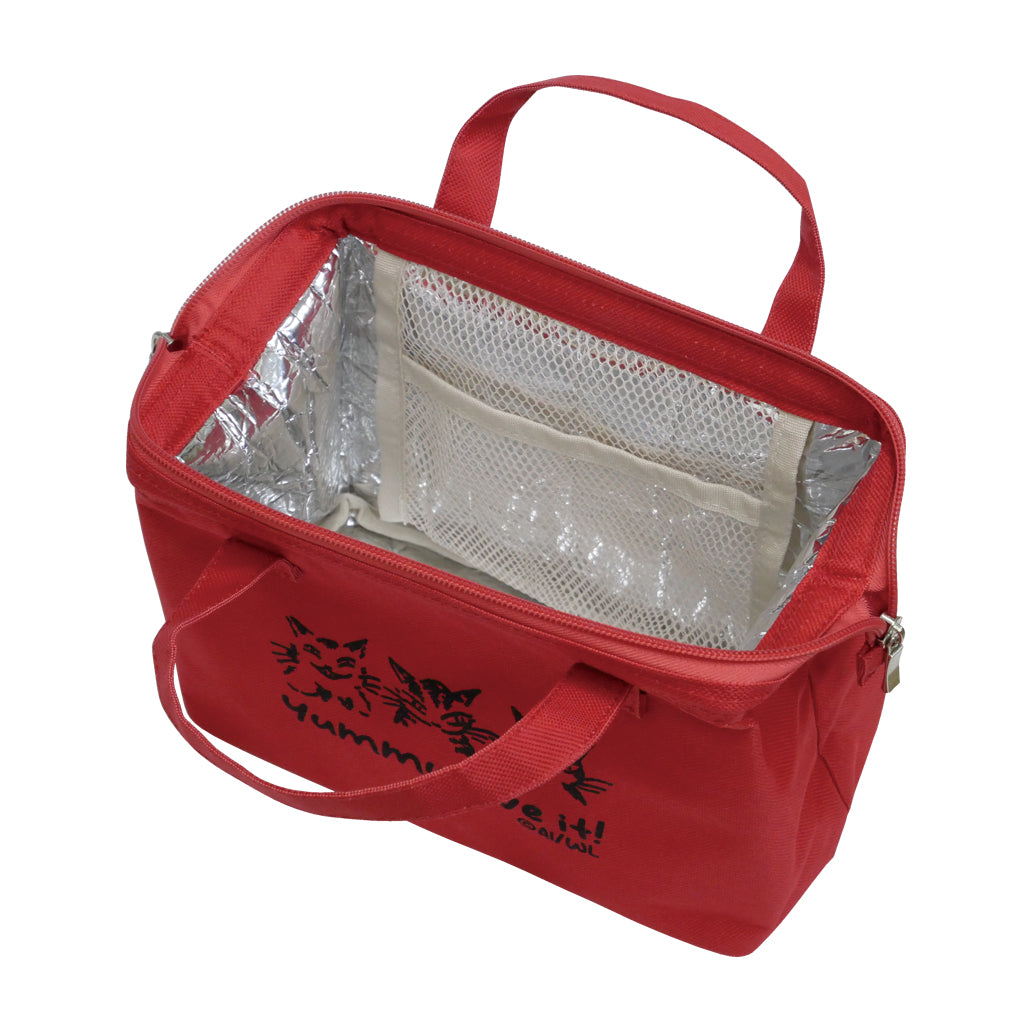 便利なダブルファスナー仕様です。バッグ内側は通気性の良いメッシュポケット付きで保冷剤やふりかけ等が入ります。