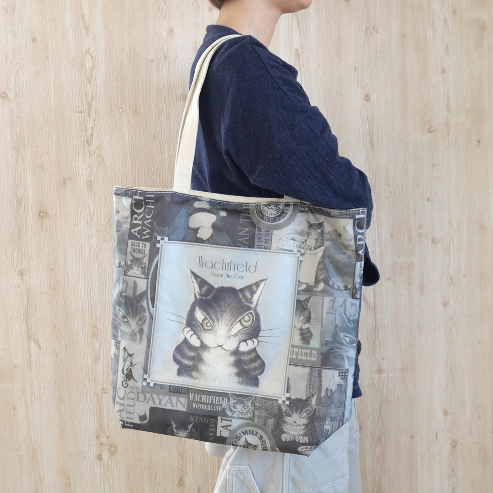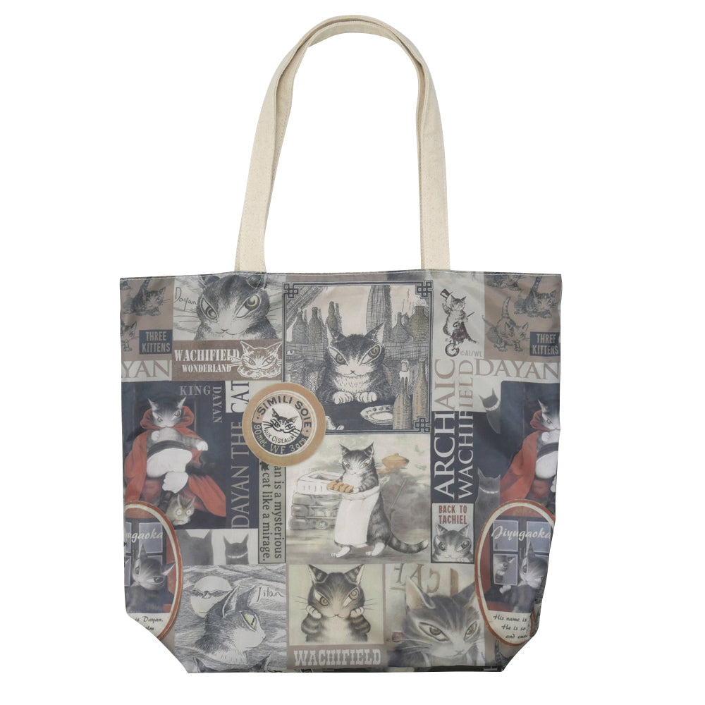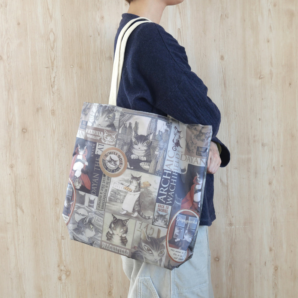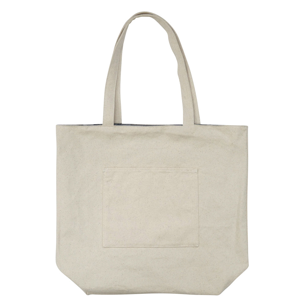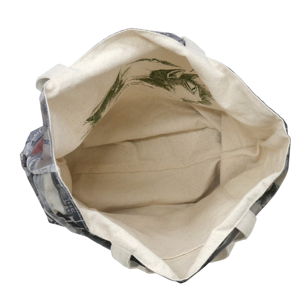 全面にプリントが入ったA面(ポリエステル)とシンプルなプリントのB面(帆布)と気分でリバーシブル出来る大きめトートです。