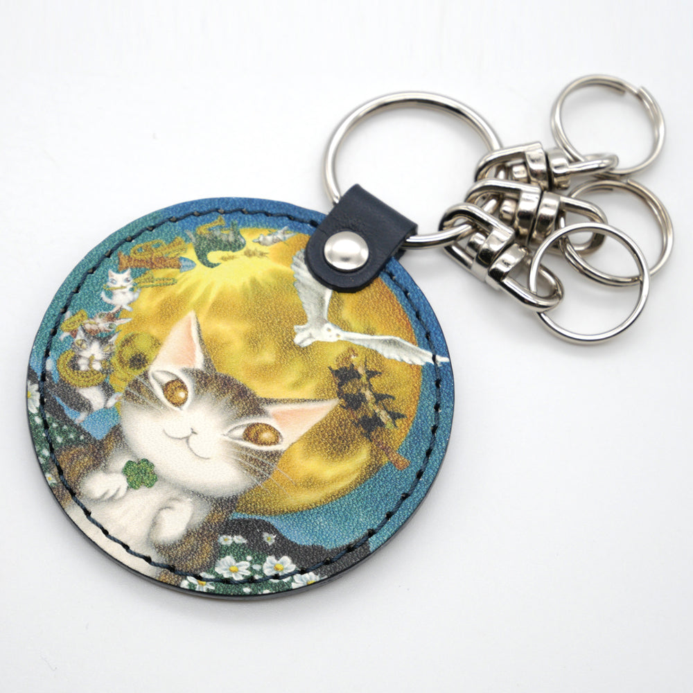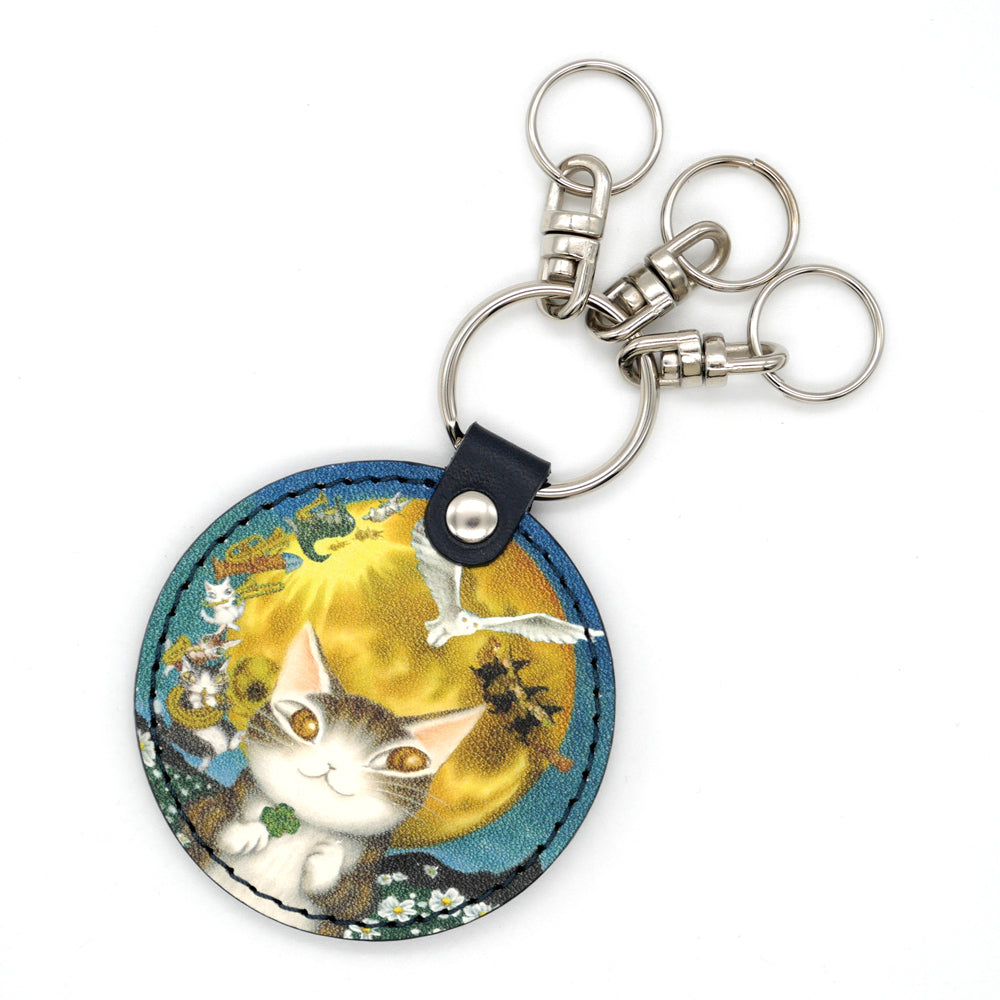 ツキが目いっぱい詰まった、レザーキーホルダー。使いやすい回転カンのついた定番3連キーです。