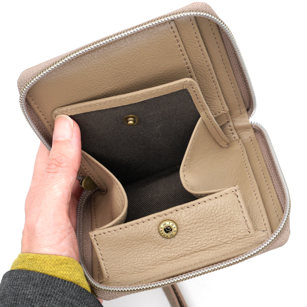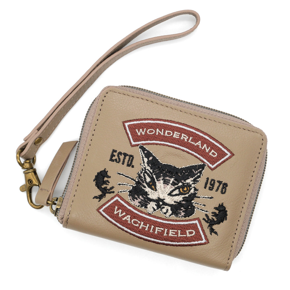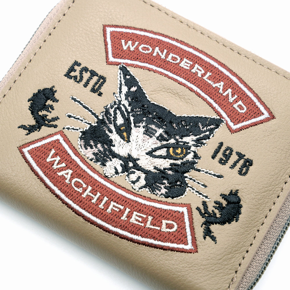 小さなフォルムに大きな刺繍が施されたプレ革工房50thお祝いモデルのミニパース。