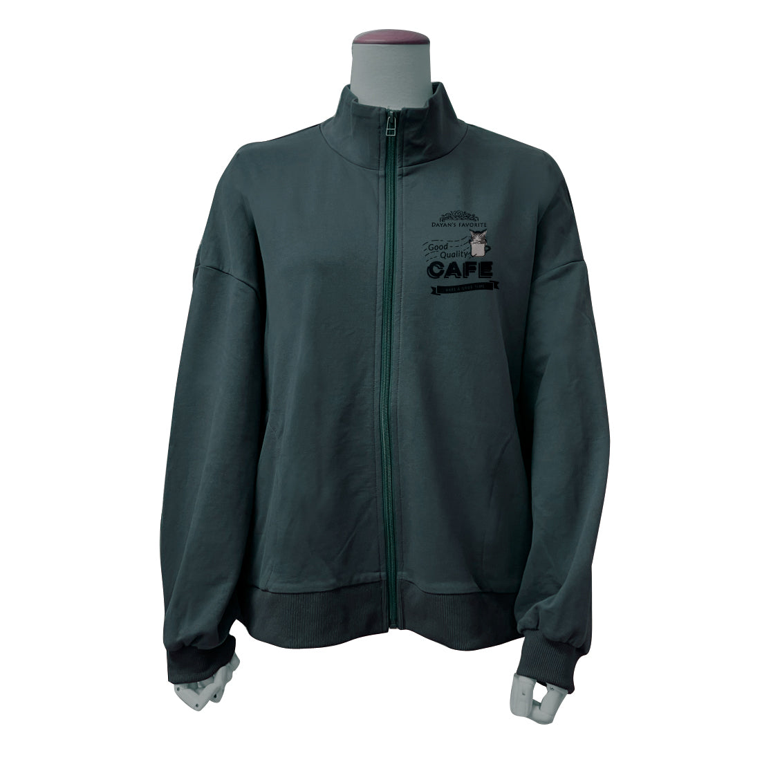 ワイドでスタンド衿のフルジップはインでもアウトでもOK!真冬は重ねてもいいし、秋春はスポーティカジュアルなアウターとしてさっと羽織れるトップスに重宝します♪実はコーヒーにちなんだ色名なのです!