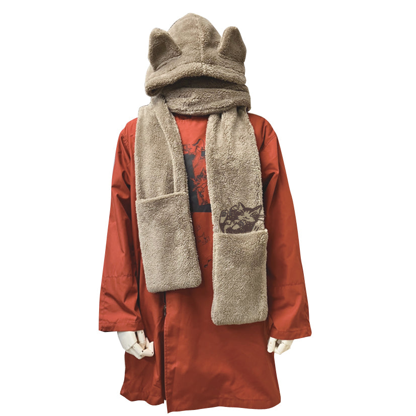 この冬、ポイントで押えたいモフアイテム ♬猫耳のフードの着いたやわらかボアのマフラーはさらにハンドウォームポケットも付いてどんな日でもあなたの味方でモフモフポカポカ♥