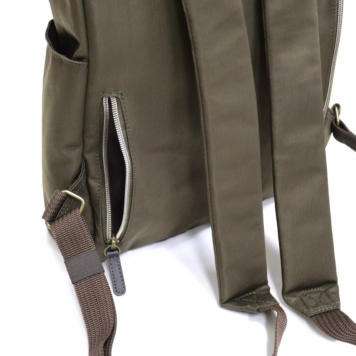 背面からの出し入れ&盗難防止ポケットで旅も街も安心です。